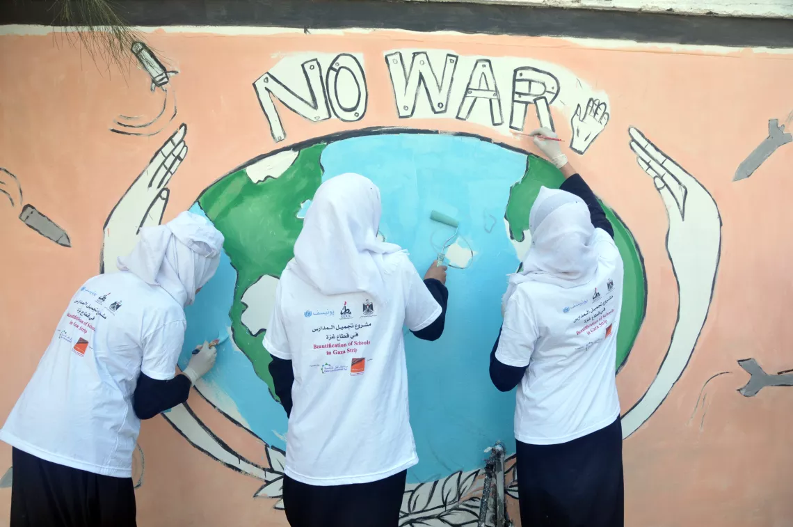 في جميع أنحاء قطاع غزة، تضررت أو دمرت العديد من الفصول الدراسية نتيجة النزاعات، ما ترك الأطفال معرضين للعوامل الجوية وبدون الأدوات اللازمة للتفوق في تعلمهم. تعرف على كيفية تعاون يونيسف مع الطلاب لتصميم مدرستهم الحلم.